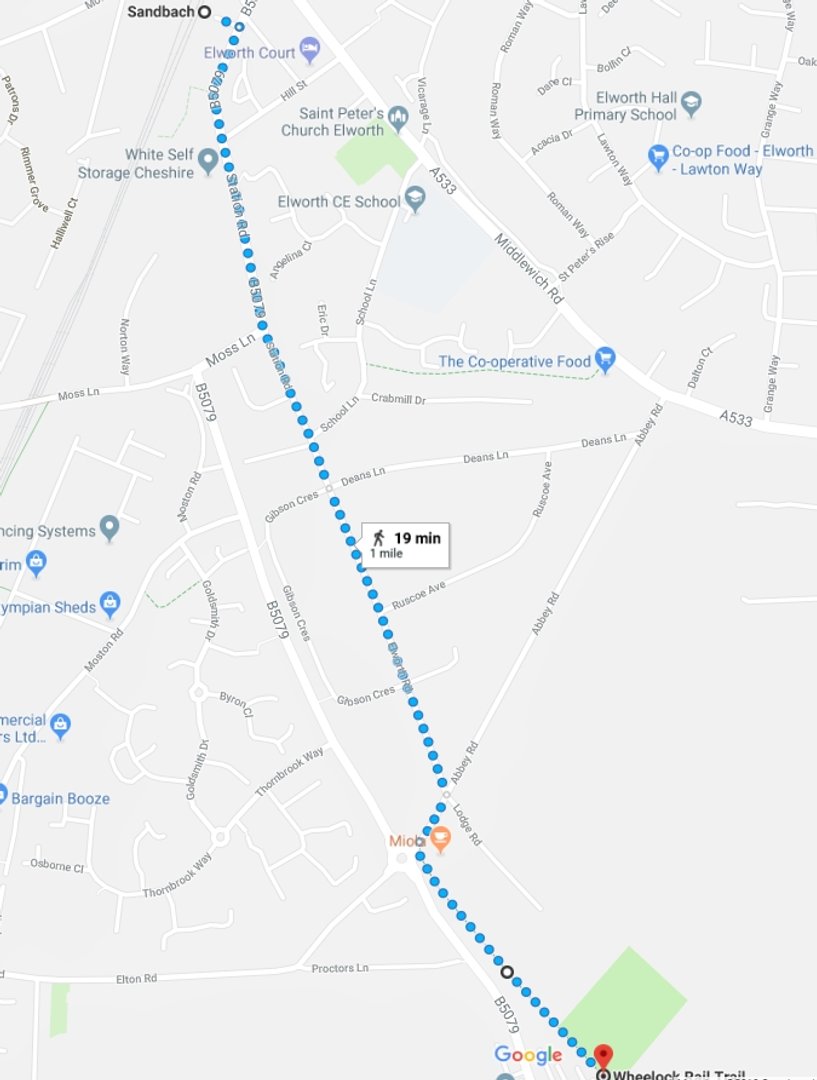 Walking Directions from Sandbach Railway Station to Sandbach United